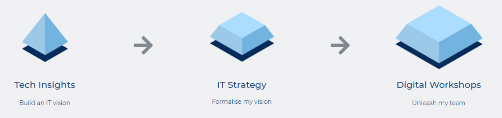 • IT Strategy: The traditional IT consultancy bit but now sandwiched between the inspiration of Tech Insights and commitment of Digital Workshops
