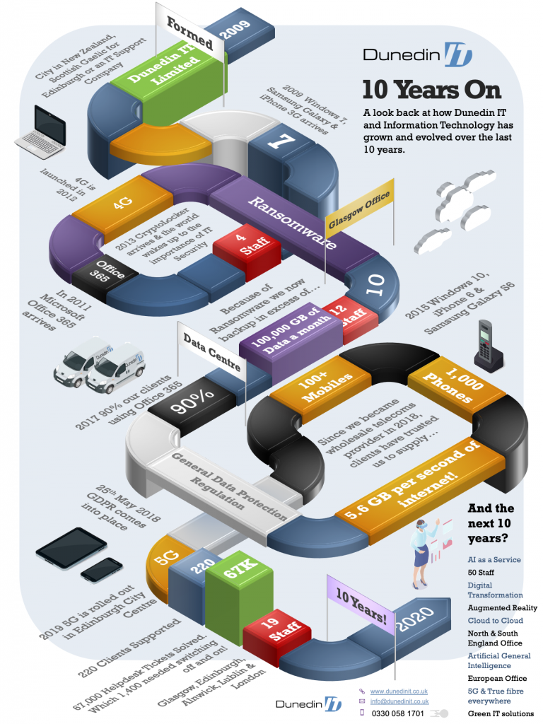 Dunedin IT 10 Years in Business This month marks our 10th year in business. From one full-time employee and 20 clients, we’re now 18 staff and around 220 clients that we’ve provided some form of IT service to this year. Our nearest clients are down the road or the corridor when it comes to the […]